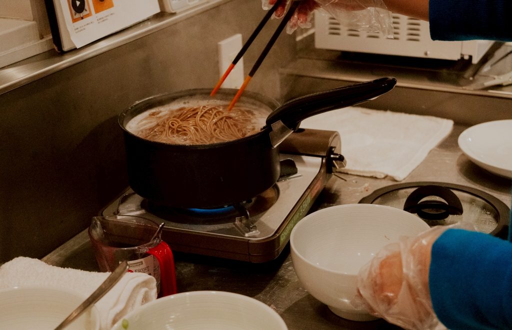 WeBaseスタッフお手製の年越しそばから温かい出汁の香りが広がり、